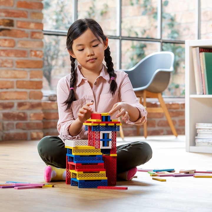 A "Mistura Básica" contém as três cores básicas elementares: vermelho, amarelo e (azul escuro), além de 10 blocos brancos, oferecendo assim a posição de partida perfeita para um jogo de construção criativo e pedagogicamente valioso!