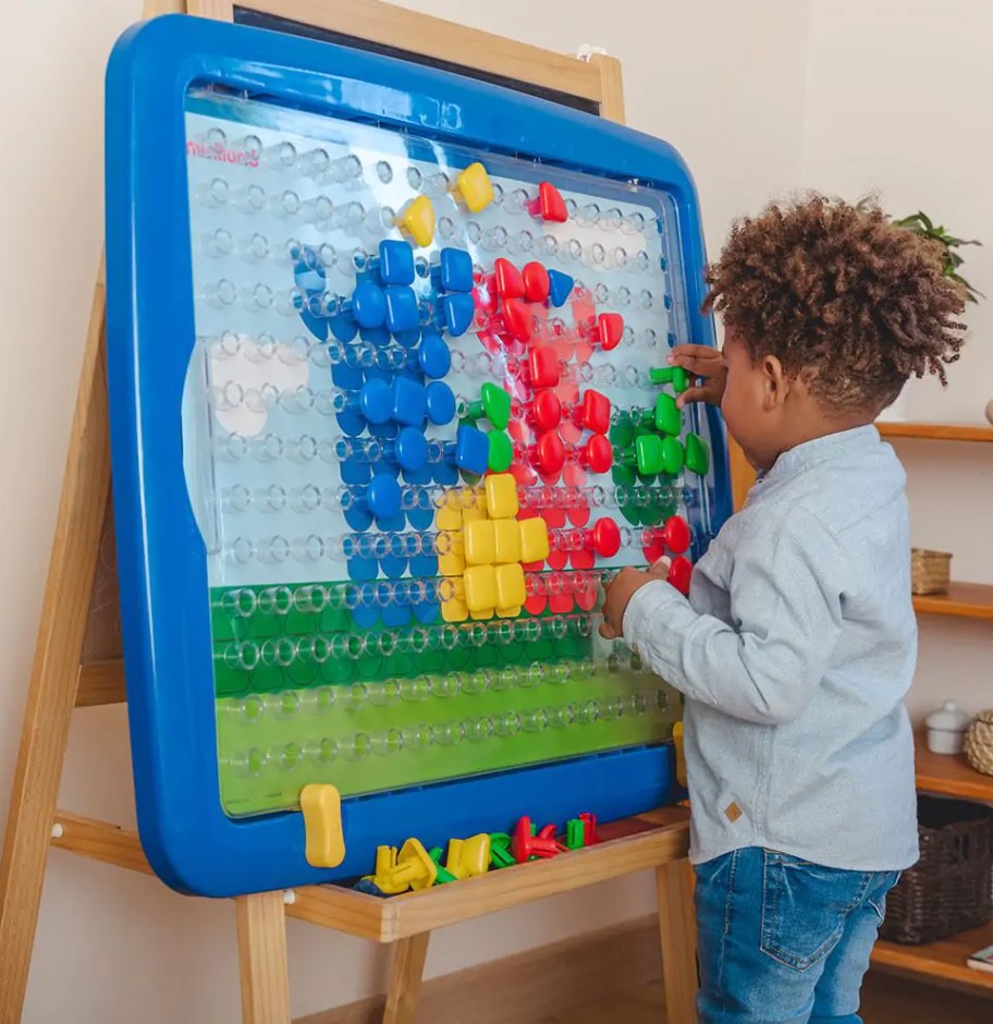 Eles auxiliam na coordenação óculo-manual e no controlo motor fino ao praticar movimentos, como segurar os pinos. As crianças aprenderão a realizar exercícios com associação, escolhendo entre cores e desenvolvendo orientação espacial.