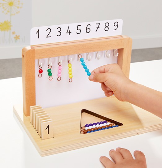 O Suporte de Contas – Atividades de 1 a 9 Montessori é um material completo e indispensável para ajudar a criança a compreender a noção de quantidade e o princípio de iteração da unidade.