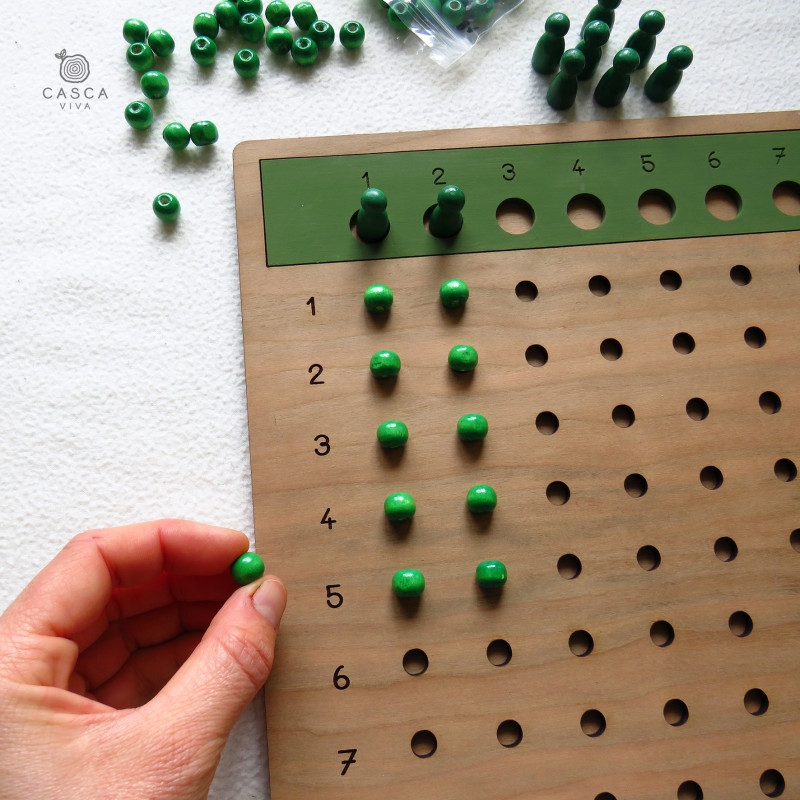 Home Matemática Tabuleiro da divisão Tabuleiro da divisão 25,00 € Desconto de %. Comprar Contactar Adicionar à wishlist Tabuleiro para trabalhar a operação da divisão. Acompanhado de um pequeno saco de pano para as peças. Medidas: 29,5x29.5cm Inclui:- Tabuleiro de madeira de cerejeira- 9 peões- 81 contas de madeira Marca Casca Viva Partilhar