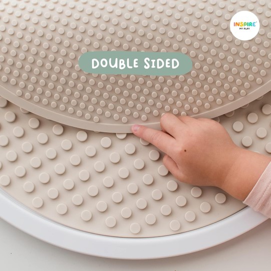 Feitos de silicone flexível, estes tapetes podem ser enrolados para facilitar o armazenamento. Tenham em atenção que o tapete chegará enrolado e precisará de ser deixado a achatar, colocando-o do lado inverso. Coloquem-no sob a base do PlayTRAY ou sob um objeto pesado durante 24 horas.