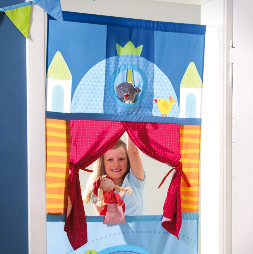 Transforme qualquer porta num palco para espetáculos imaginativos com o Teatro de Marionetas de Porta HABA! Projetado para estimular a criatividade e o gosto pela narração de histórias, este teatro encantador é perfeito para espetáculos de marionetas, peças teatrais e aventuras infinitas de faz-de-conta.