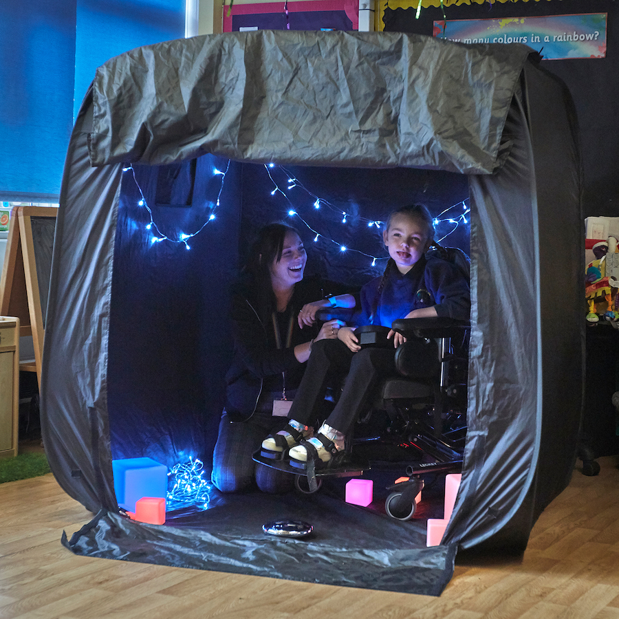 Uma tenda sensorial versátil e portátil, perfeita para criar um ambiente tranquilizador.