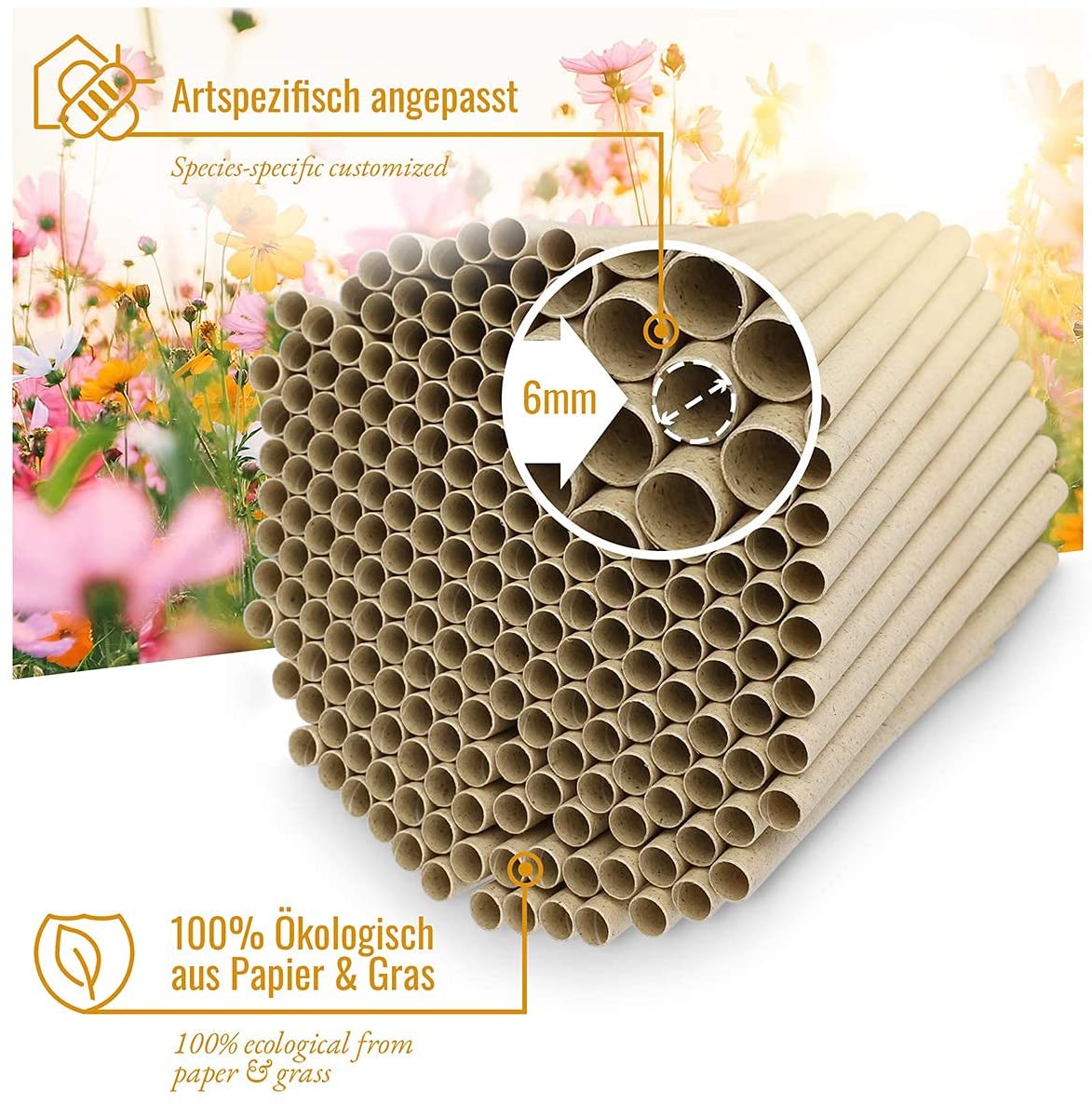 200 Tubos de nidificação de 6mm para abelhas selvagens - Tubos de papel 100% ecológicos para hotel de insetos