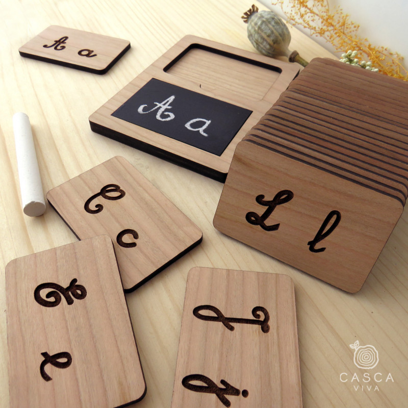 - Base com peça em ardósia (escrever e limpar) que pode ser retirada, sendo a base usada com areia ou plasticina, ou outra actividade.