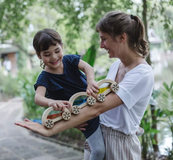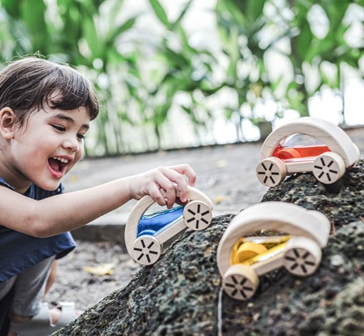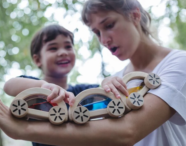 O Wautomobile da PlanToys é um carro em forma de semi-círculo que vem com água colorida no interior, disponível nas cores vermelho, azul ou amarelo.