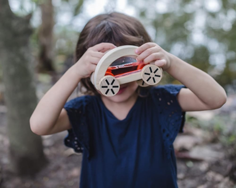 É um robusto veículo de madeira, fácil de segurar, com rodas grandes e muito fácil de manusear, perfeito para que os pequenos possam manipulá-lo, pegá-lo e fazê-lo rolar com facilidade.