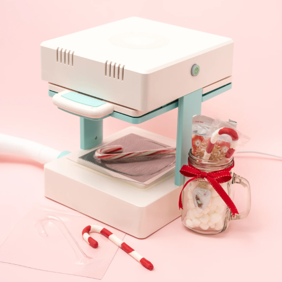 Apresentamos a 3D Mold Press da We R Memory Keepers. Com esta máquina de moldagem a vácuo, é fácil criar moldes a partir de objetos do dia a dia. Os moldes criados podem ser usados para fazer velas, sabonetes, peças de argila, ímanes e compartimentos para cartões com shaker. Como as folhas de plástico da We R Memory Keepers são seguras para uso alimentar, é possível até criar chocolates a partir dos seus moldes personalizados.