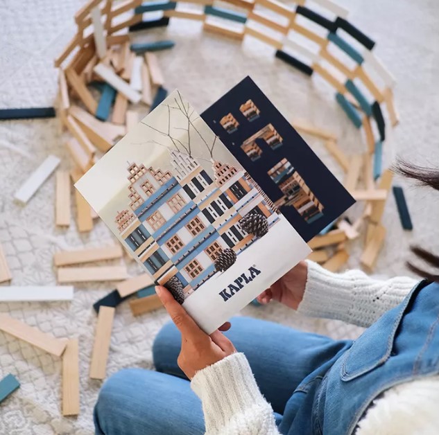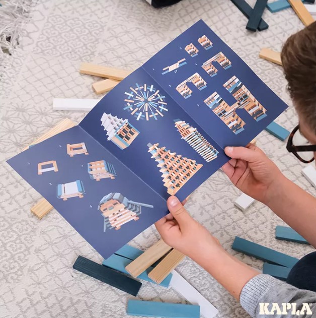 As tábuas KAPLA são todas do mesmo tamanho, permitindo que os construtores brinquem e criem com possibilidades infinitas. As tábuas são simplesmente montadas sem a necessidade de cola ou clips, permitindo construir a partir da imaginação.