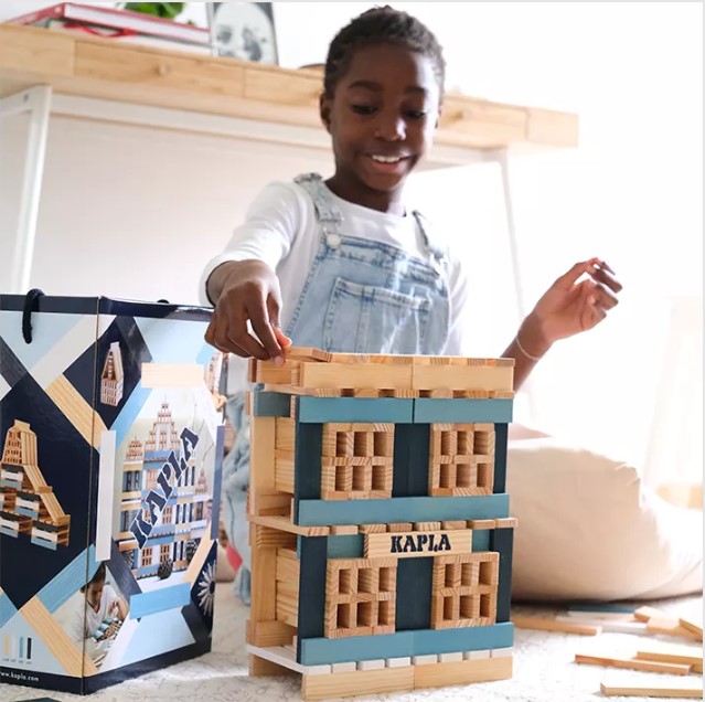 Originárias de florestas francesas 100% renováveis, as tábuas KAPLA são feitas de pinho natural de Landes. As tábuas coloridas são tingidas com corantes alimentares seguros.