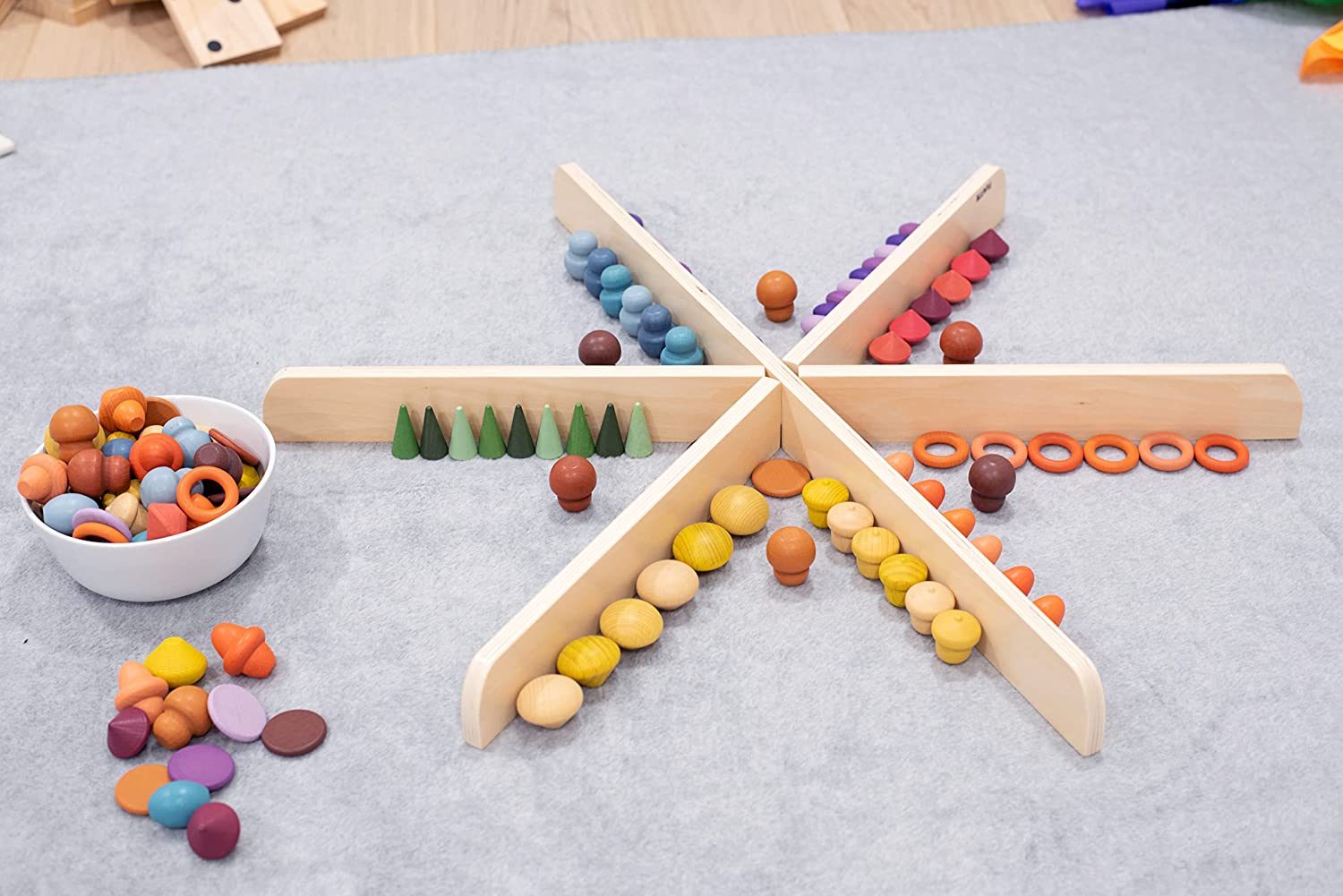 Eles são uma solução rápida e ideal para ser usada no chão ou em qualquer superfície de brincadeira para atividades de classificação, contagem e criação de padrões. Eles até podem ser levados em caminhadas de aventura para classificar recursos naturais enquanto se movimenta!