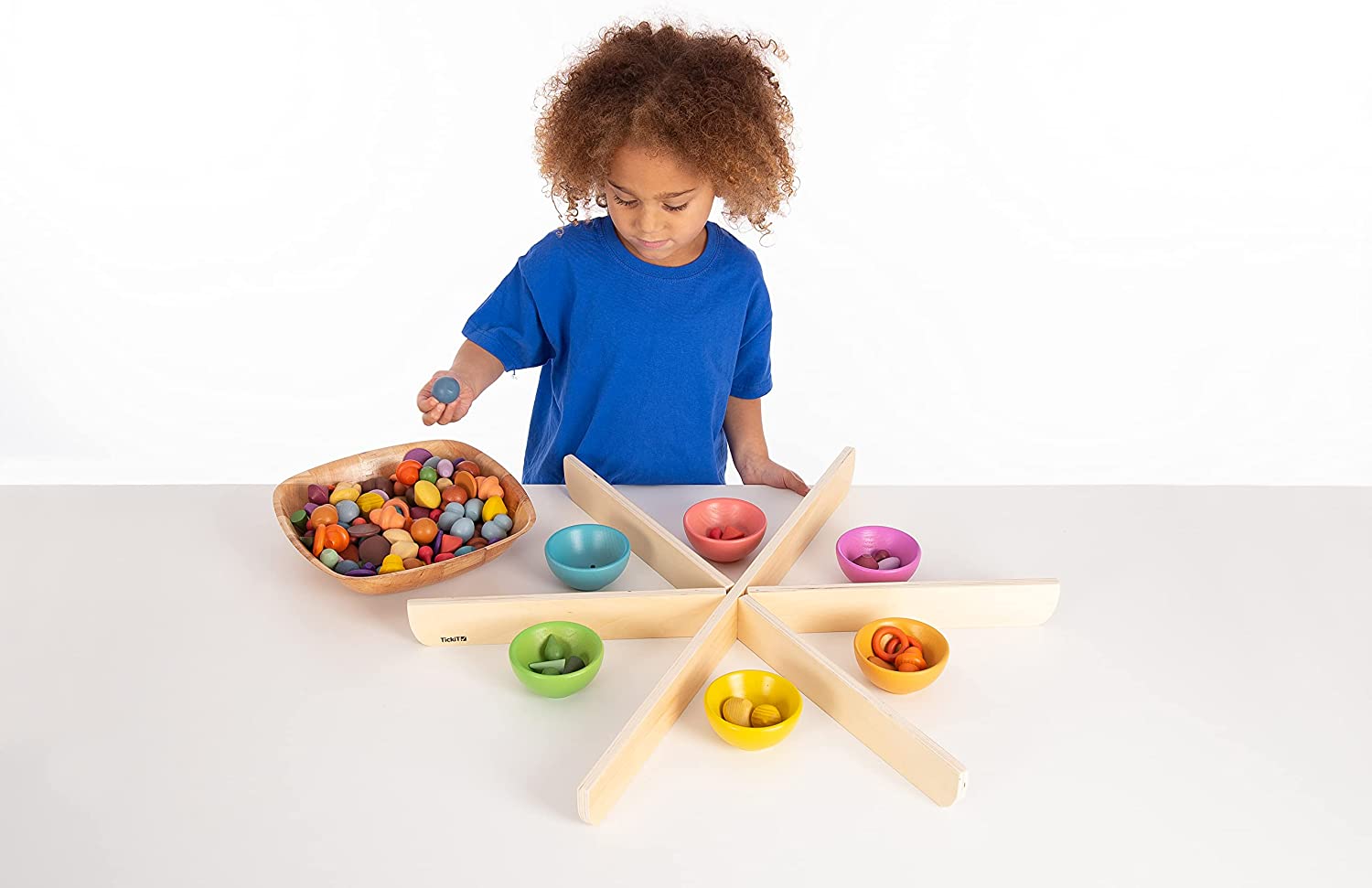 Os Divisores de Descoberta de Madeira TickiT® foram projetados para formar um círculo de classificação de 6 seções. Feito de compensado de bétula liso, este divisor simples mas eficaz se encaixa facilmente e permite que a criança organize seus tesouros e objetos especiais durante a brincadeira sensorial e de descoberta.