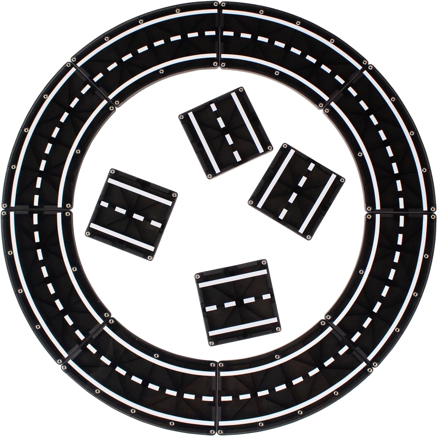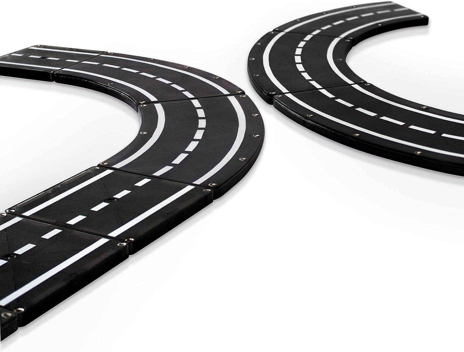 As estradas magnéticas ligam-se e desligam-se facilmente para diversas opções de construção. Inclui todas as peças necessárias para criar um círculo perfeito (8 Curvas) ou uma pista oval (8 Curvas + 4 Quadrados).