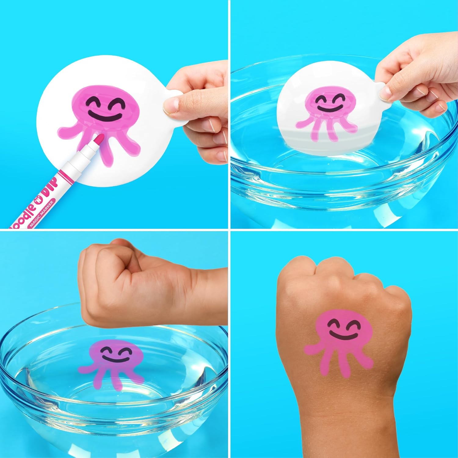 Deixem a imaginação fluir enquanto desenham e fazem os vossos desenhos flutuar, dando-lhes vida! Depois, mergulhem-nos para criar tatuagens temporárias.